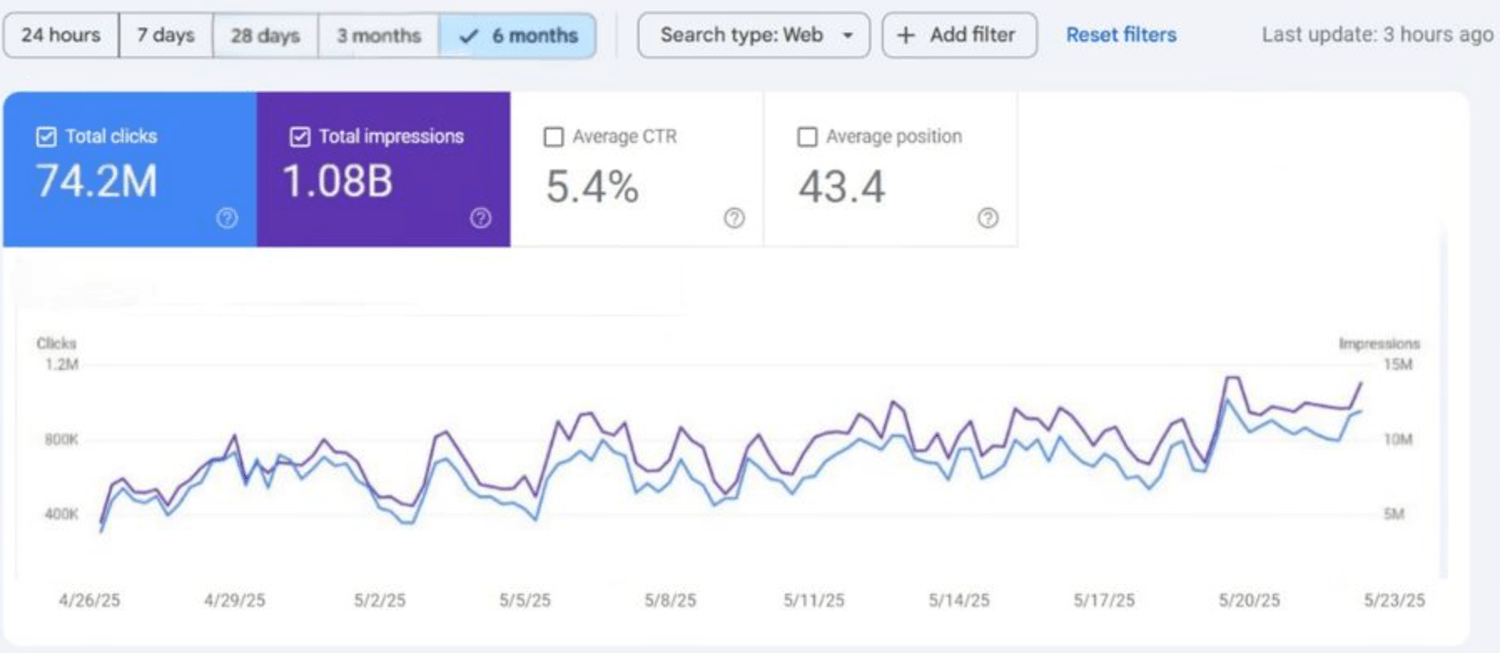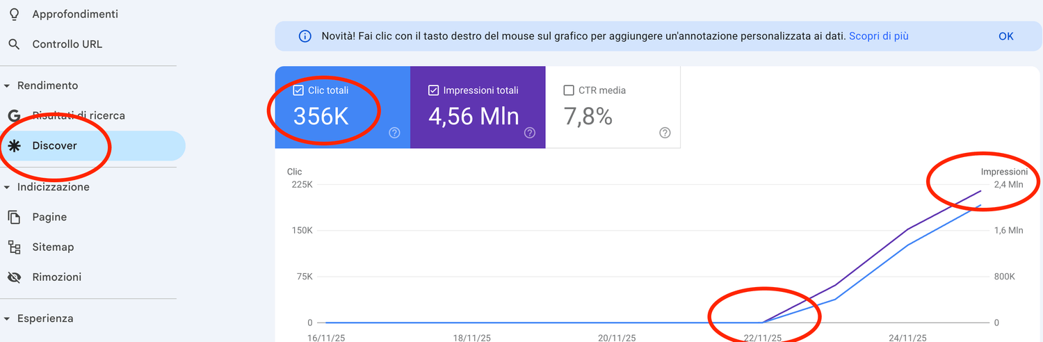 Unlike organic search, where traffic is limited to the number of people searching for a specific keyword, Google Discover can push your content to millions of users in just a few hours. If one of your articles goes viral on Discover, the volume of visits it receives is comparable to that generated by a major national news story.