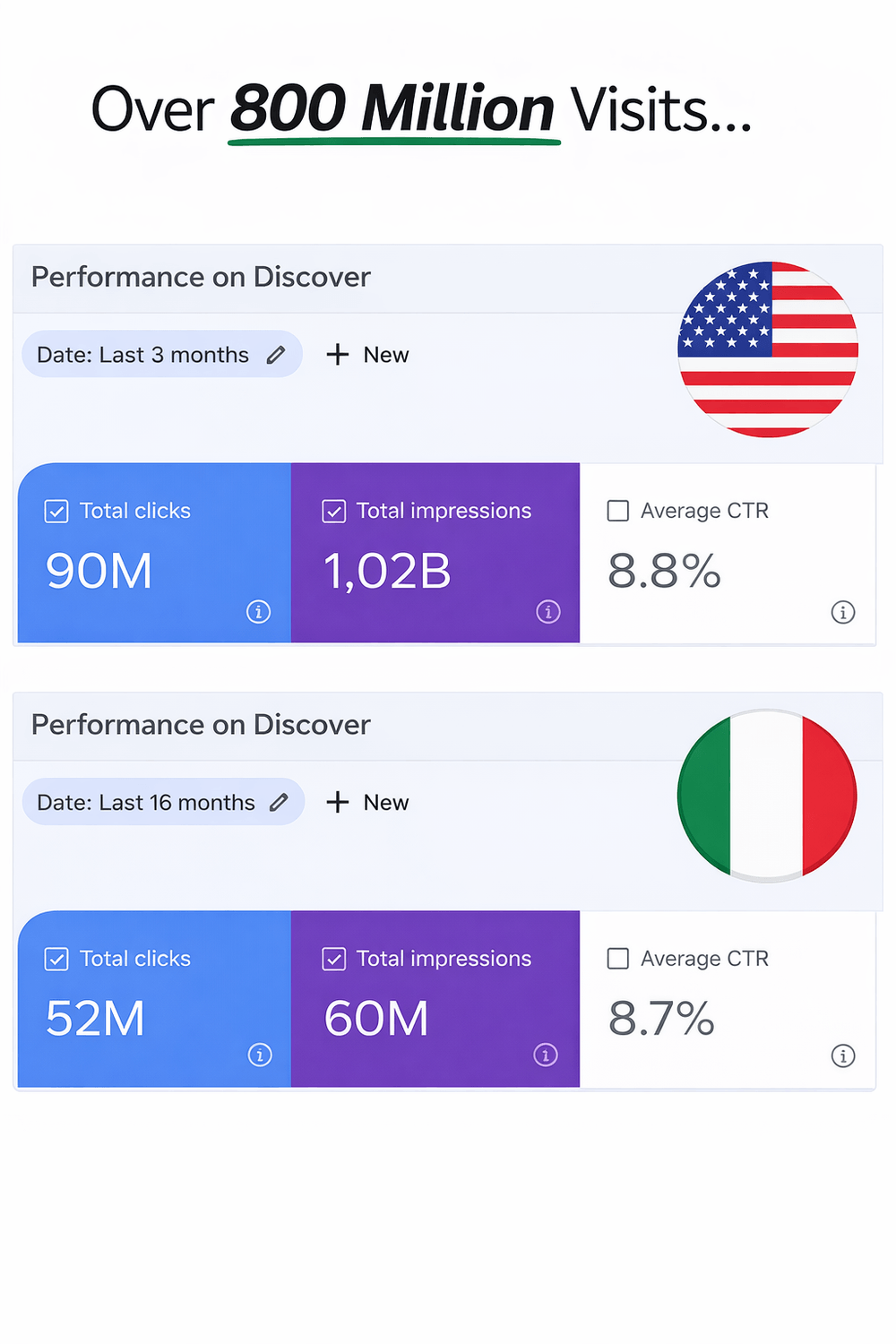 "We followed the 'Dominate Google Discover' strategy step-by-step and the results were incredible. After just one week, our site got into Discover, generating over 50,000 visits in a single day. A result that exceeded all expectations!"